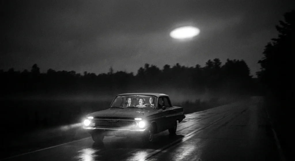It’s the account of a New Hampshire couple who said they saw an unusual object in the night sky while driving through northern New Hampshire in September 1961 and later believed they experienced “missing time.” In later retellings—especially after hypnosis in 1964—they described an alleged abduction and onboard examination, making the case a landmark in UFO and abduction lore.