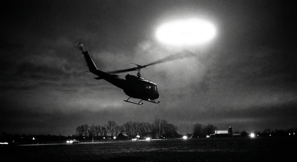 Later summaries commonly anchor the event to an Oct. 18, 1973 nighttime flight involving a U.S. Army Reserve UH-1H traveling between Columbus and Cleveland, often placing the encounter over north central Ohio near Charles Mill Lake and naming the aircraft commander as Larry Coyne. Those are the stable reference points in circulation; the problem is that contemporaneous flight paperwork, ATC logs, or first-person statements that would lock down the planned route, precise track, or time-stamped waypoints were not present among the documents reviewed for this article (Primary/Early: none found in the reviewed set).