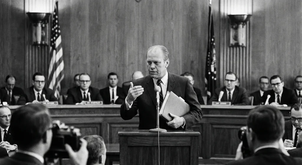 Gerald Ford’s 1966 intervention reads cleanly as a governance move: when executive-branch explanations fail in public, legitimacy has to be rebuilt through Congress. As House Minority Leader in early 1966, Ford was not freelancing on the fringe; he was asserting that public confidence is restored through congressional oversight, meaning Congress uses hearings, subpoenas, briefings, and legislation to test and supervise executive-branch claims under an accountable record.