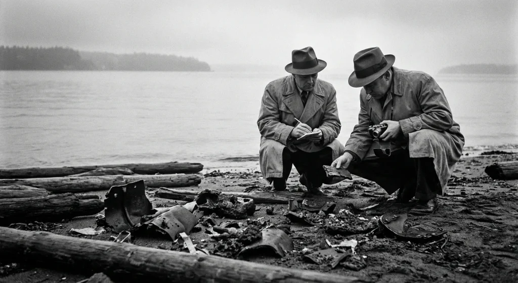 The handling problem was not abstract. Contemporary reporting tied the fallen officers directly to the claimed materials, stating that two crewmen who had transported material associated with the Maury Island reports were killed when their aircraft crashed. Those links made documentation more, not less, important. If you cannot show who possessed each piece, when it was collected, and whether it was altered or mixed with look-alike material during informal transfers, the debris cannot carry the story on its own.